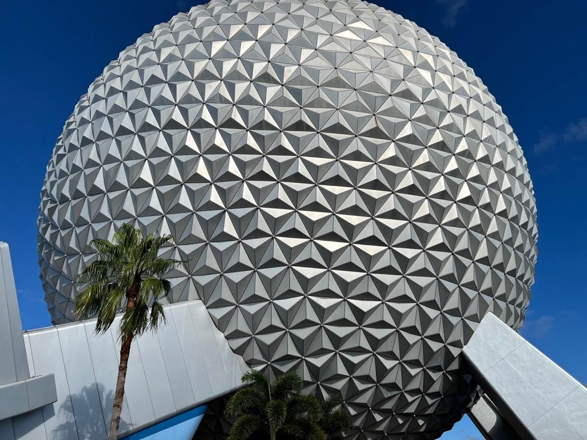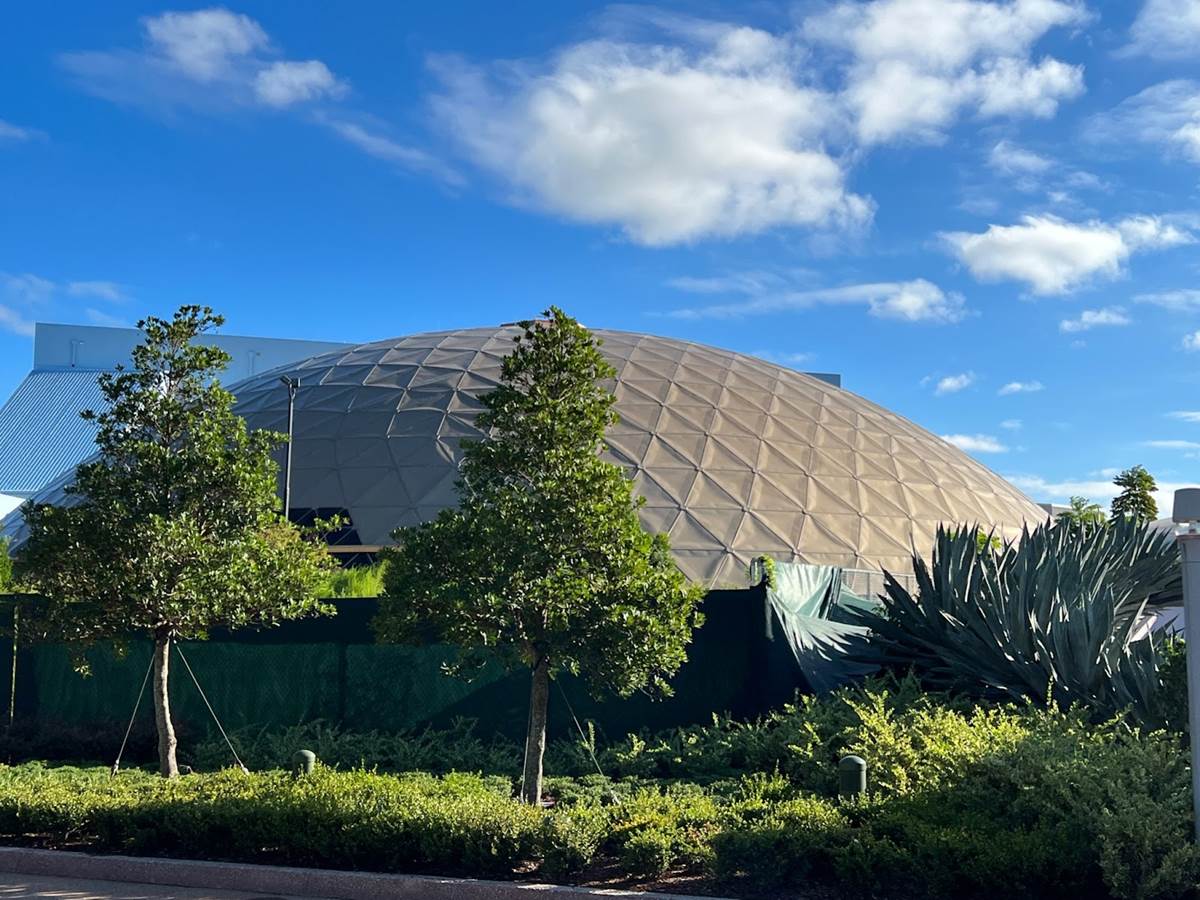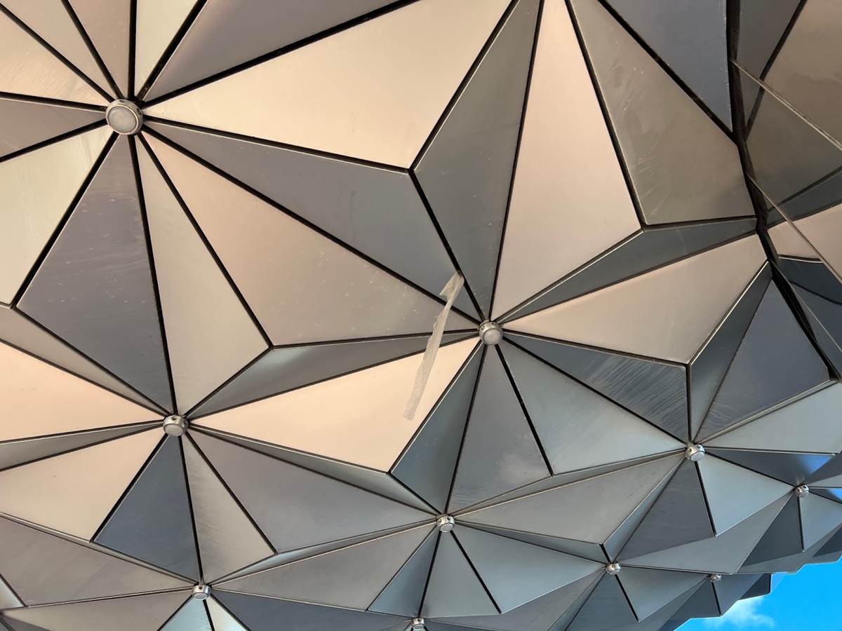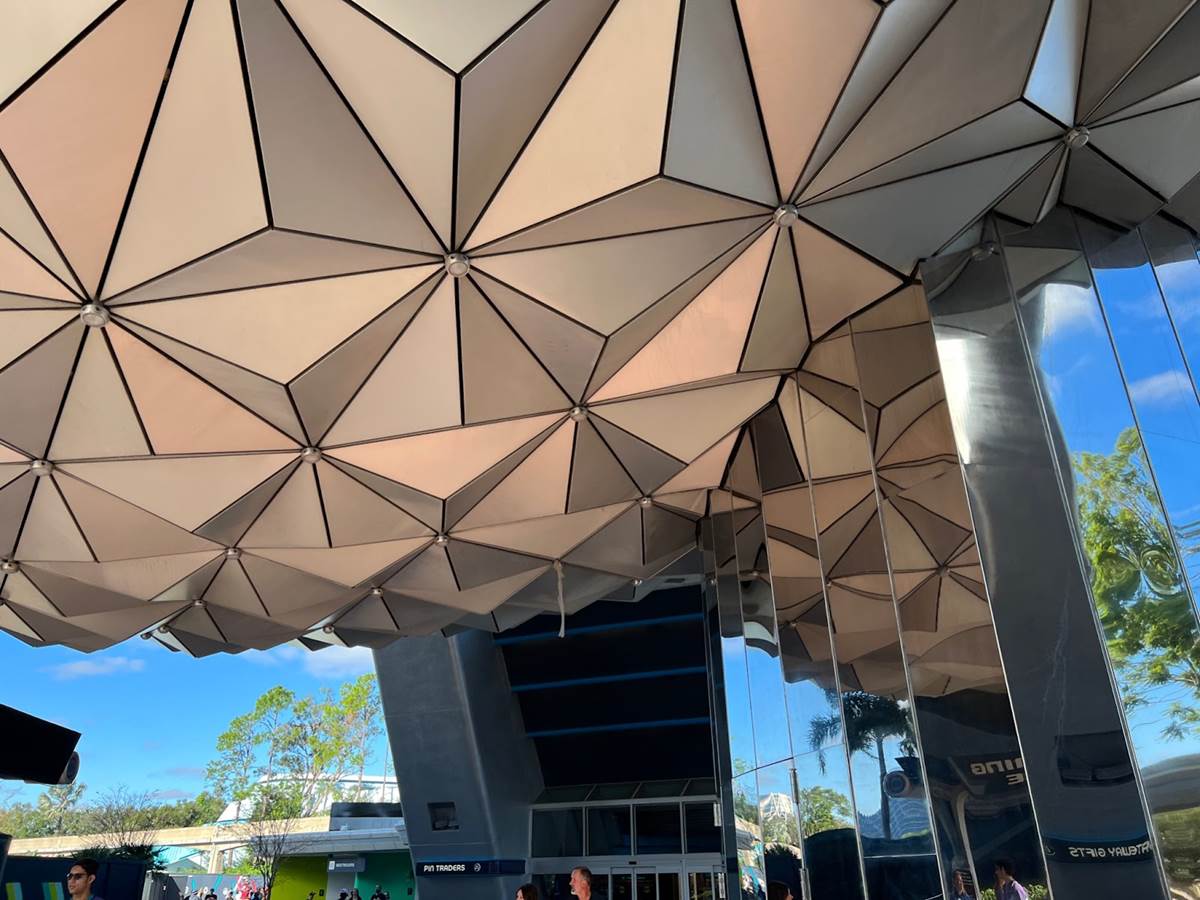 Spaceship Earth looks great, except for this strip of fabric hanging underneath near the entrance to the attraction.
