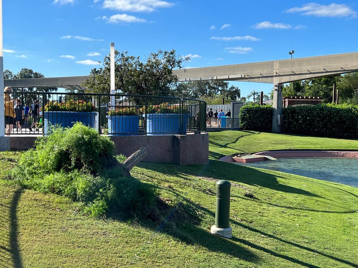 No visible damage to the foliage in front of The Seas with Nemo & Friends.