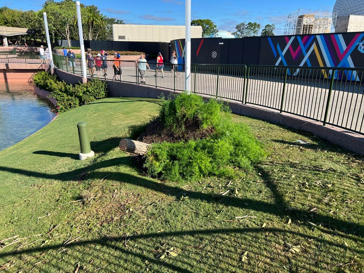 EPCOT construction walls are intact and the sites don’t seem to have suffered any damage.