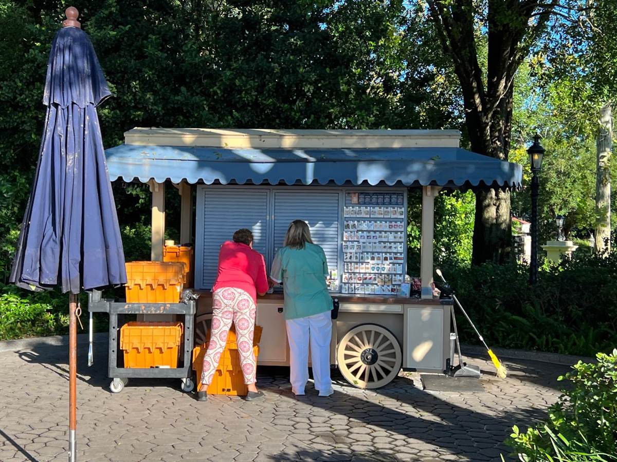 Cast Members are busy setting up all of the outdoor carts, which were emptied for the storm.