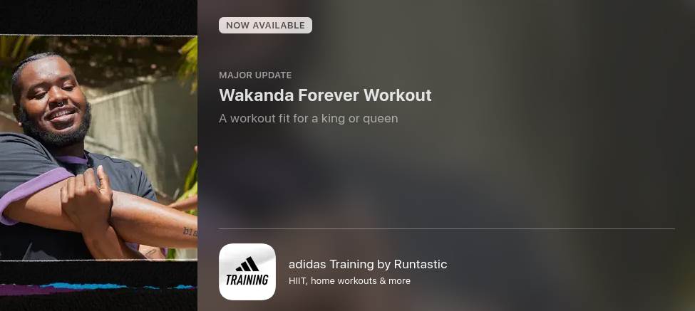 - Here’s the description on the app: Excited for Marvel Studios' Black Panther: Wakanda Forever? Take on our new workout. Only on the adidas Training app!