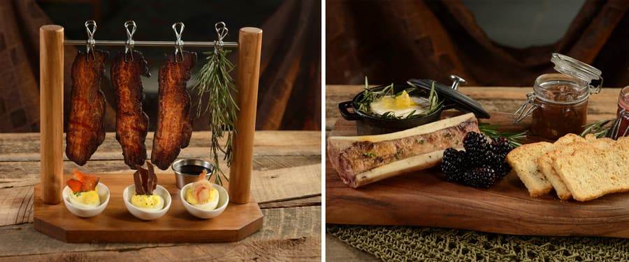 - Rounding out the new menu items are the Bacon on the Wire and the Bone and Brie. The Bacon on the Wire takes a new meaning to an elevated dish with black pepper candied bacon cured in smoked paprika and bourbon, cold smoked, and roasted perfectly with a bourbon glaze. The dish also features deviled eggs topped with fried shrimp, chipotle beef jerky, and salmon candy with a bourbon drizzle.