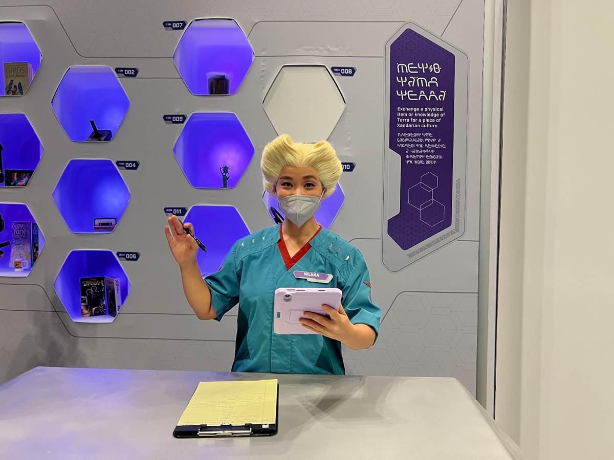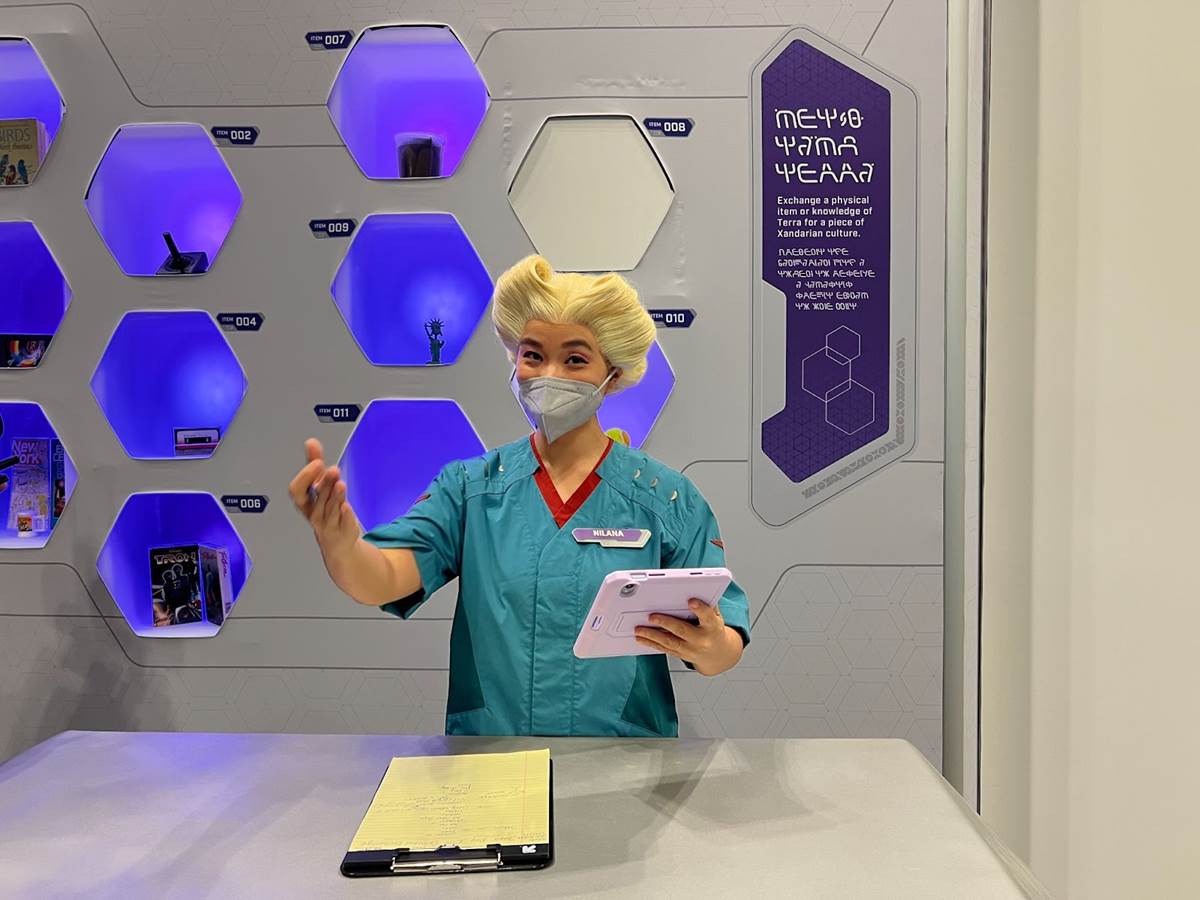 Making the trip from EPCOT, Xandarian ambassadors are in attendances to learn more about Terra and help teach guests more about Xandar. In most of the images below, we have provided a translation of the Xandarian language beneath.