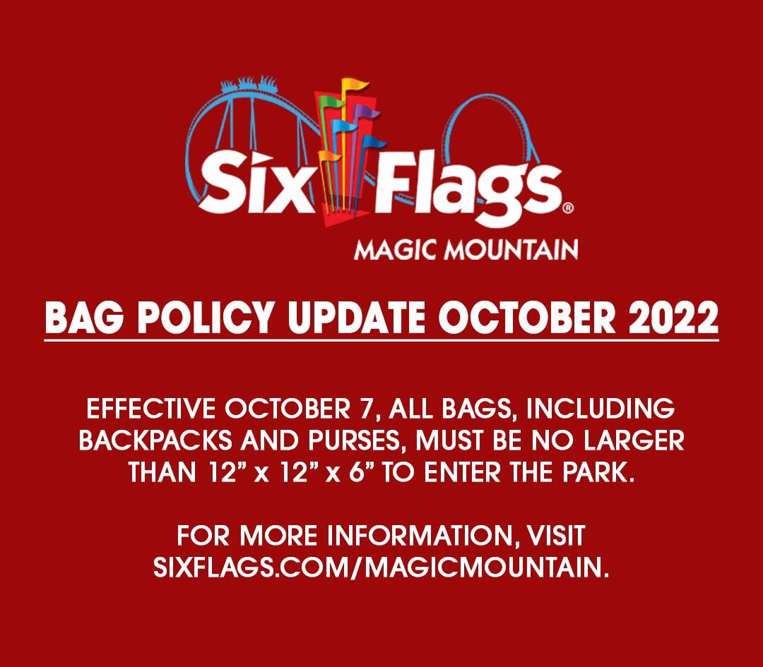 - Starting immediately, Six Flags Magic Mountain implemented a new bag policy.