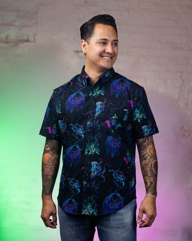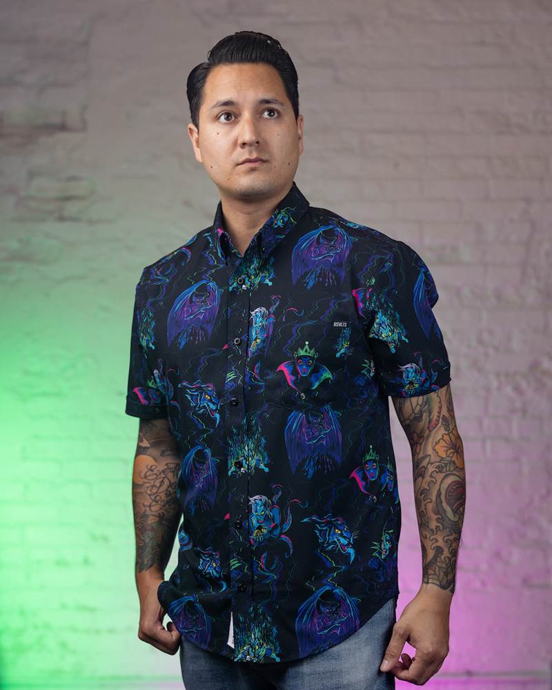 - The Disney Villains collection is available now on the RSVLTS website and RSVLTS app. In addition to the standard unisex cut, the Neon Nightmare design is also available in a Women’s style.