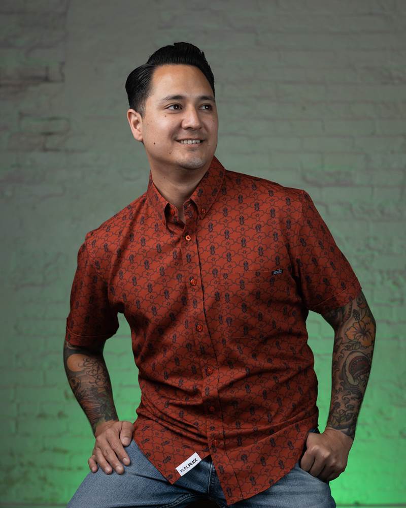 - All shirts are traditional button down, made with KUNUFLEX stretch material and come in sizes XS-4XL ($70).