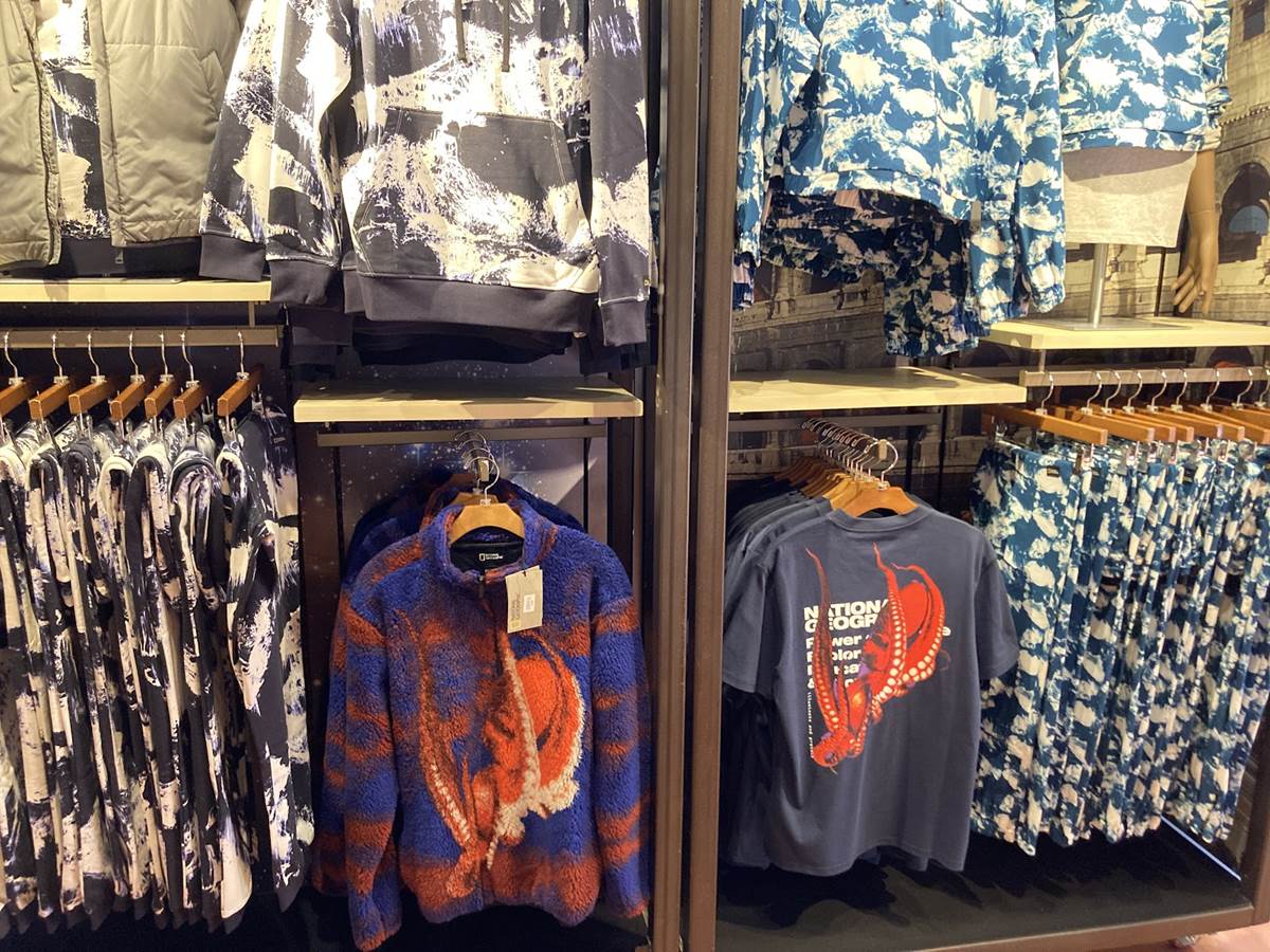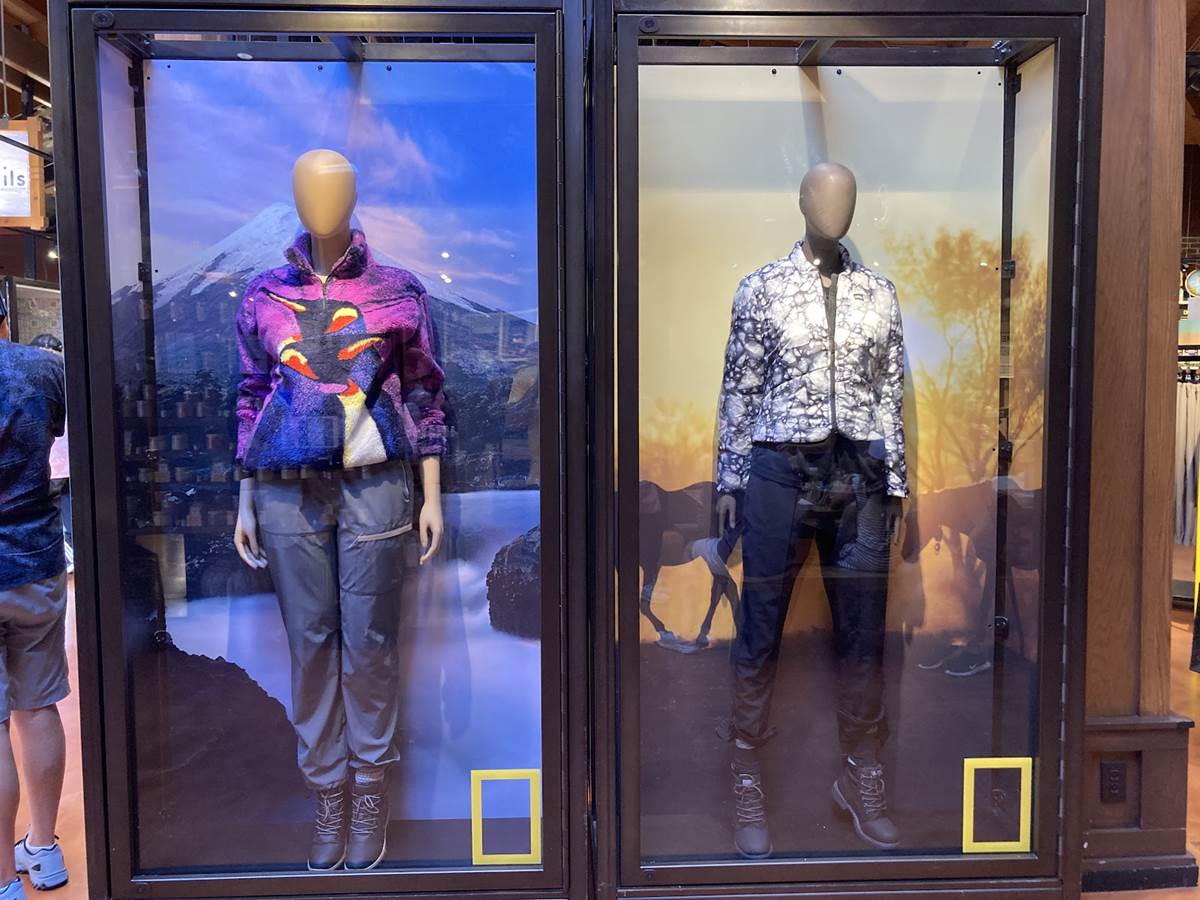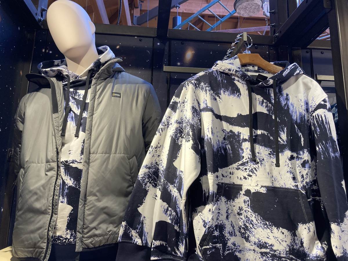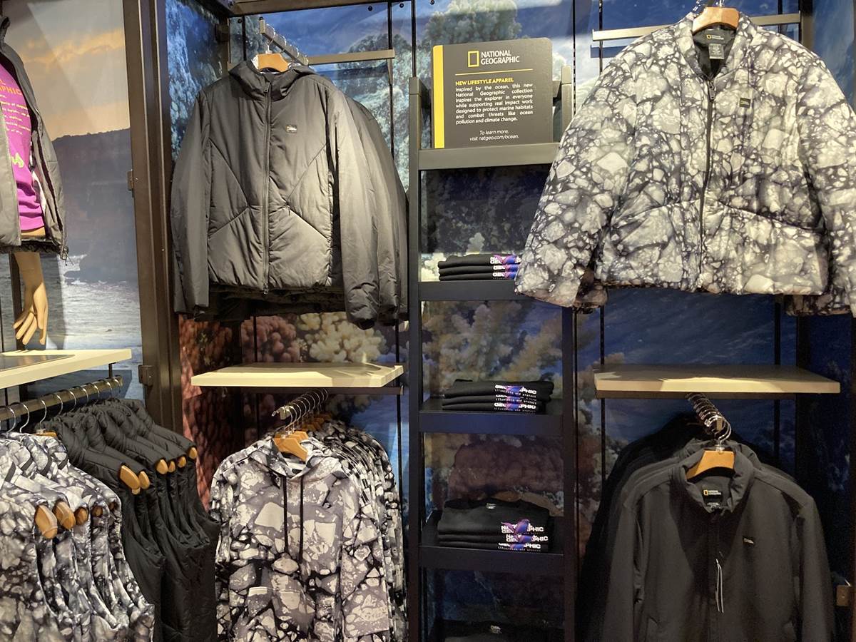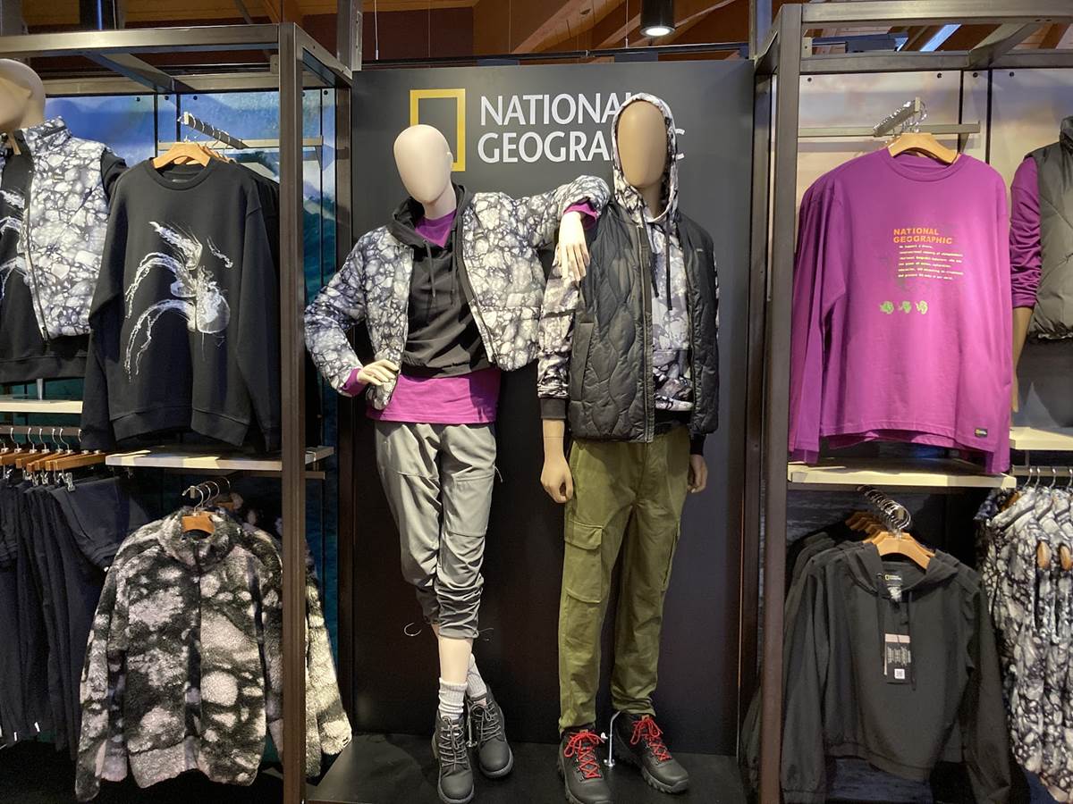 Formerly the home of Dooney & Bourke products and other fine accessories, the area now sports a line of National Geographic apparel, toys, and more. As far as the apparel goes, a variety of cold weather gear is available just in time for the upcoming winter season, though its probably more suited for those returning home to some place other than Florida.
