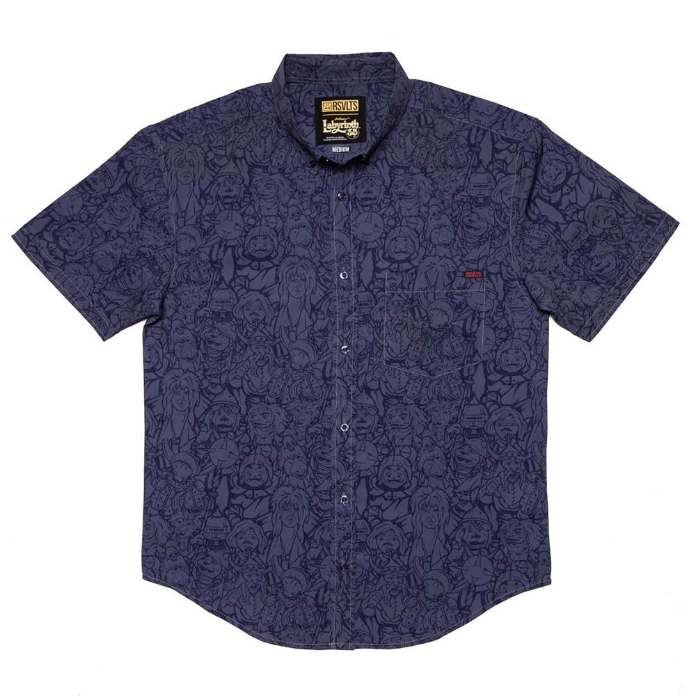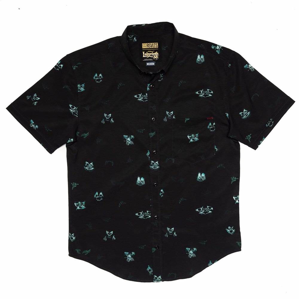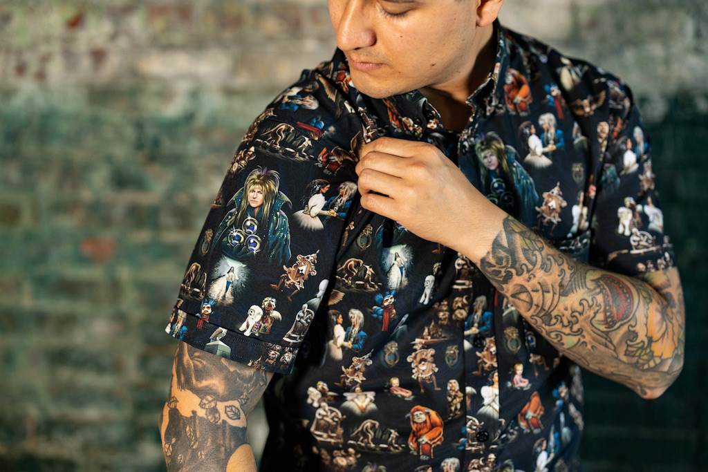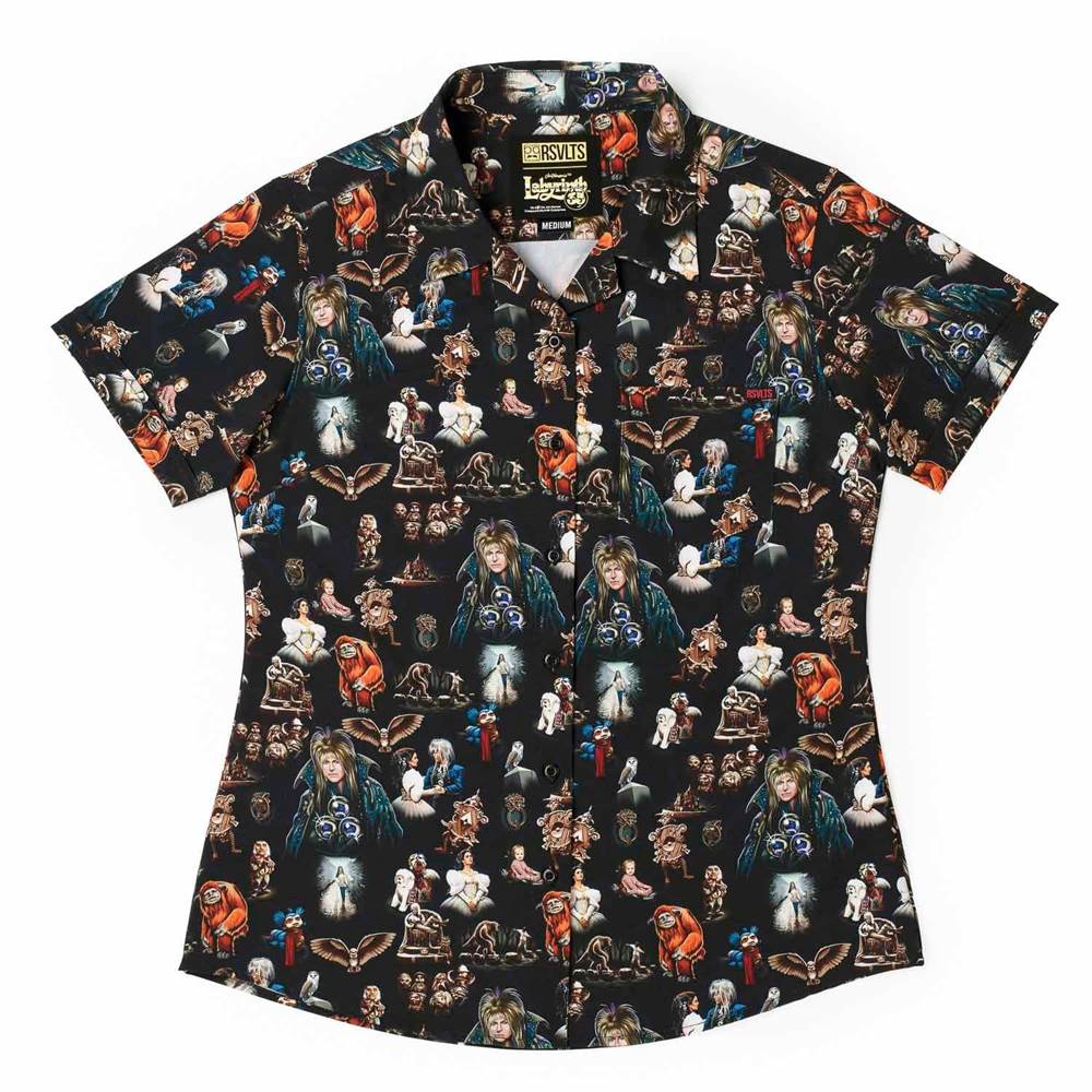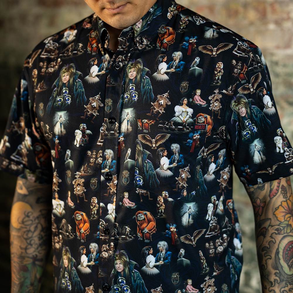 “‘It's further than you think. Time is short.’ Sarah got 13 hours to solve the Labyrinth. That's about half as long as you'll need just to stare in amazement at this shirt. It would be easier to name who is not on this ultimate tribute to Labyrinth than it would be to name who is on it. Sarah, Jareth, the goblins, Hoggle, Ludo, the Worm, Sir Didymus and Ambrosius, the Four Guards, even little baby Toby all make an appearance on this maze of a button down."