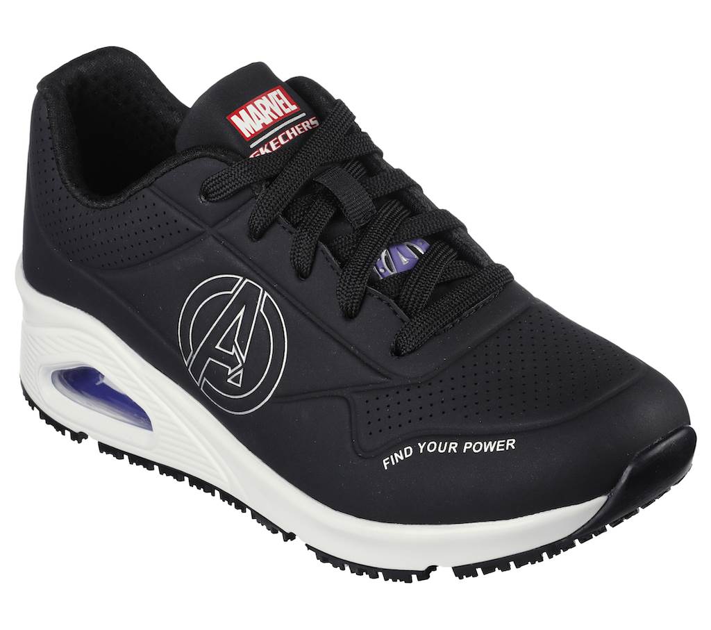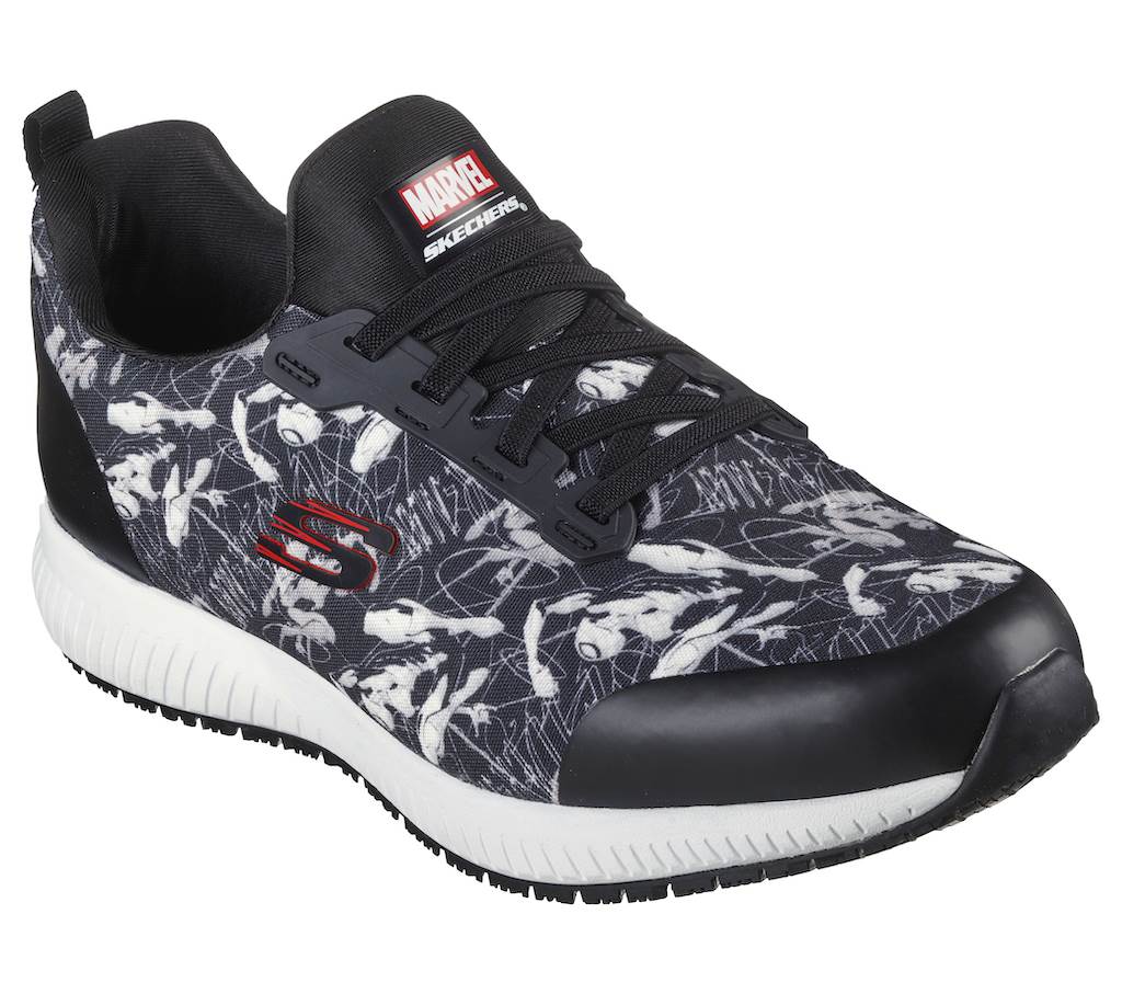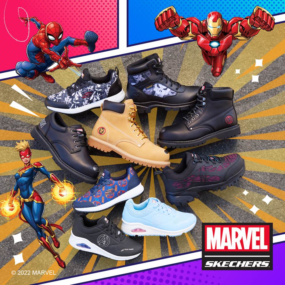 - The Marvel x Skechers collaboration offers footwear that incorporates safety and comfort features like steel toes and memory foam insoles that essential workers require along with Marvel-inspired designs that fans will love for a collection that meets the needs of the heroes in our lives on and off duty.