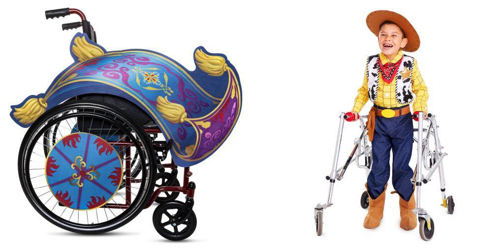 Disney’s ever-growing line of adaptive costumes now includes a Sheriff Woody outfit and a Magic Carpet wheelchair cover! Other fun styles include Black Panther, Elsa, the Razorcrest (The Mandalorian’s ship) and even an Incredibles vehicle.