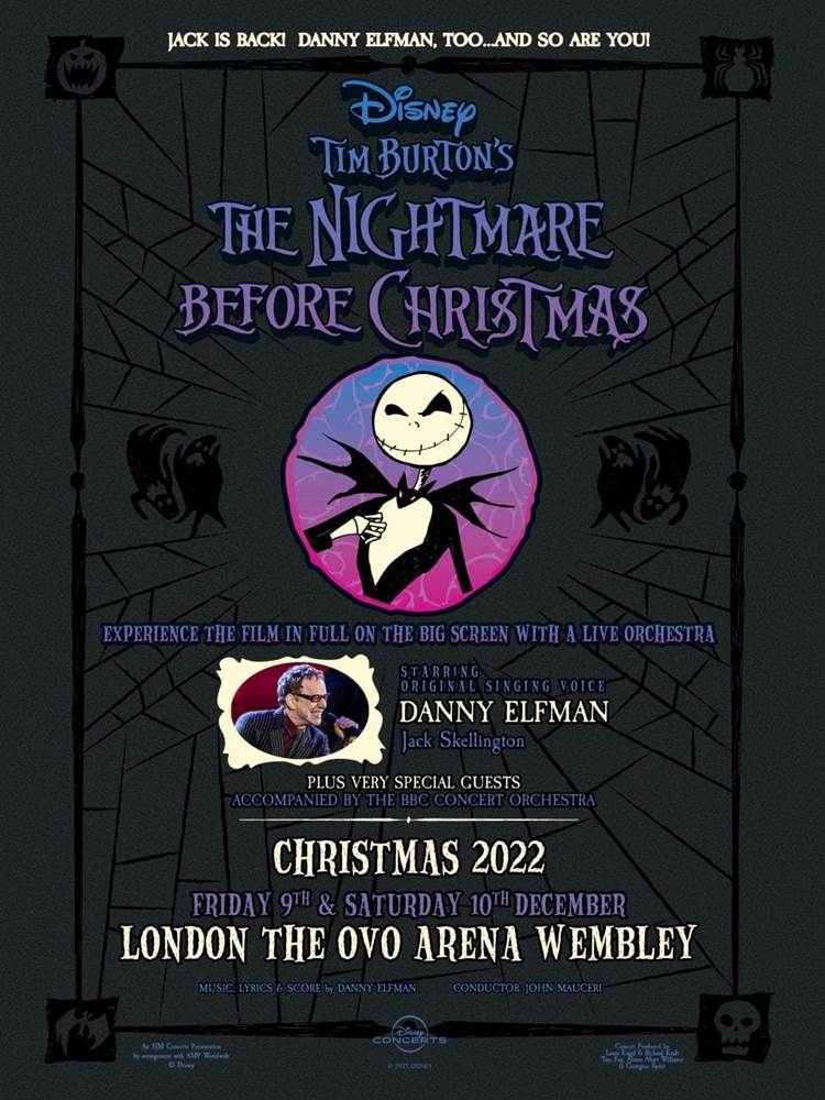 - Multiple award-winning composer, songwriter and reigning Pumpkin King, Danny Elfman will be bringing Disney’s timeless classic, Tim Burton’s The Nightmare Before Christmas to life for two very special UK arena shows in December 2022.
