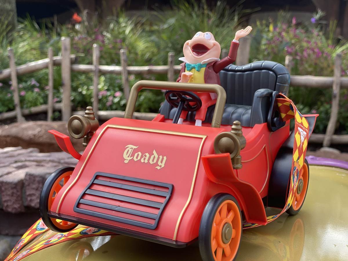 - The popcorn bucket features Mr. Toad himself in one of his precious motor cars, which looks pretty spot on to the attraction ride vehicles on both coasts.