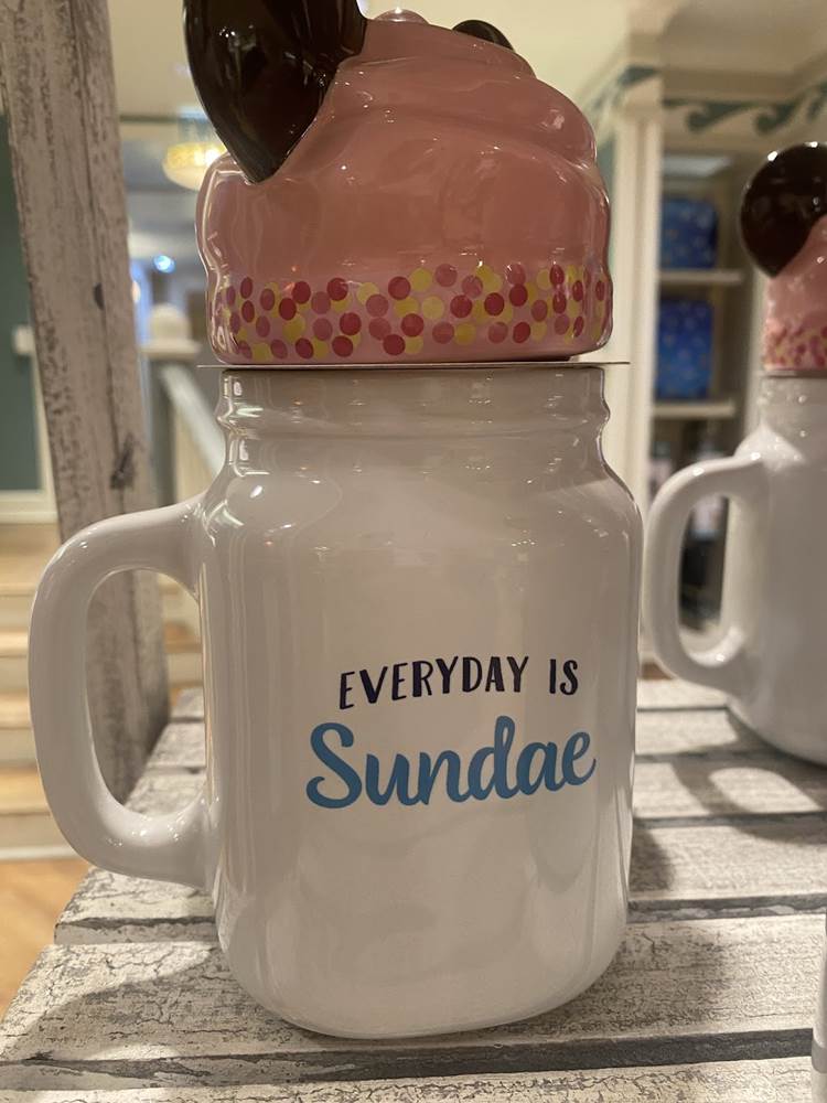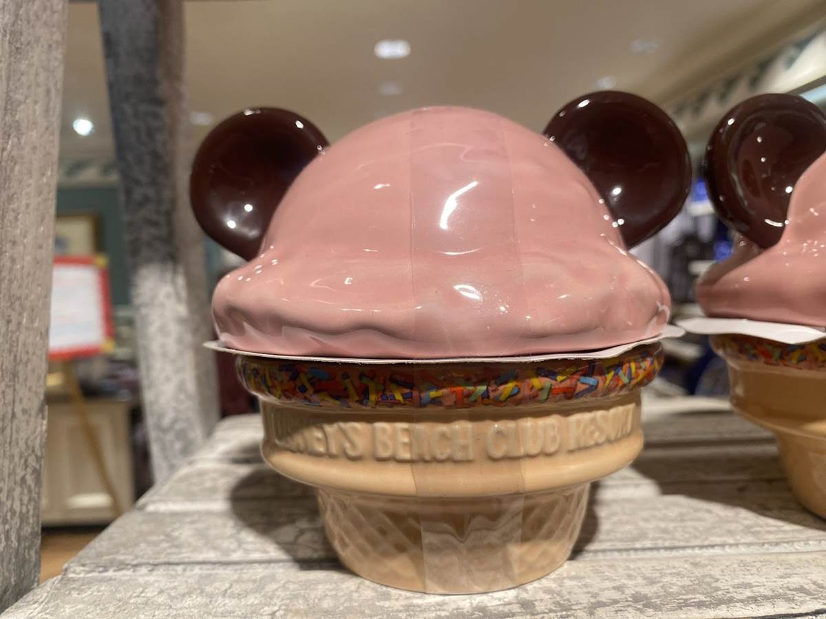 - Not located in a park, the location still has a dedicated fan base that would absolutely love some merchandise celebrating the eatery. If they take just a few steps, heading away from the restaurant and into one of the gift shops at the hotel, they can find this ceramic mug featuring the logo for the favorite location, complete with faux ice cream lid that also features replica cookie mouse ears and straw. While the mug isn’t new, it is an oft overlooked area specific piece of merchandise, notable since that type of merchandise is becoming more rare.