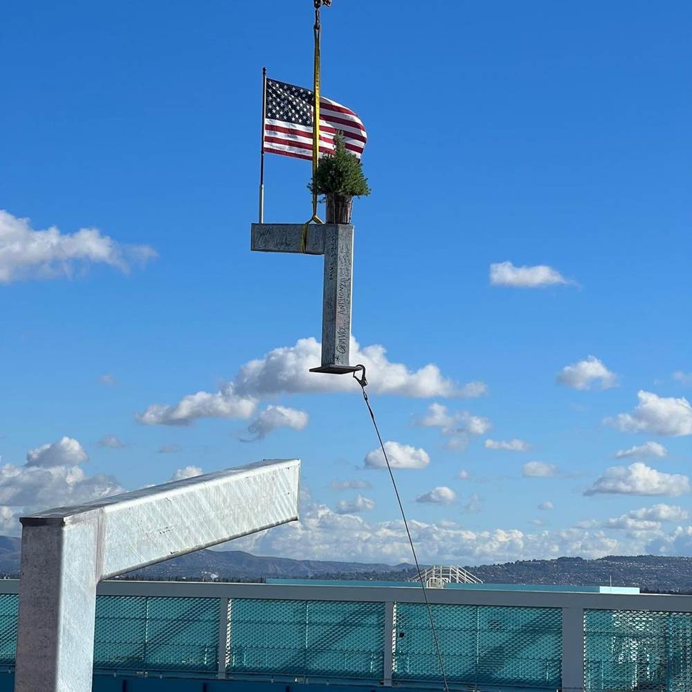A construction milestone was celebrated yesterday as the last of the highest steel beams was raised, marking the topping off of The Villas at the Disneyland Hotel.