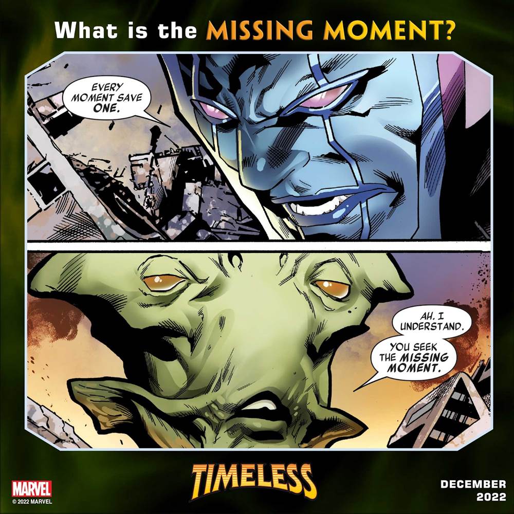 - Last year’s installment was a must-have for fans and received a much-demanded second printing. This year’s “Timeless" promises to be even more shocking with mysterious teases, exciting first appearances, and, at its core, a dramatic high-stakes journey for Kang the Conqueror.