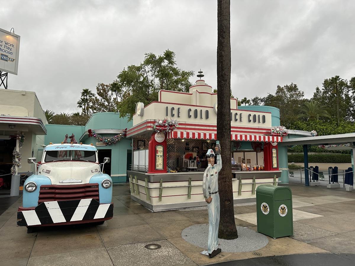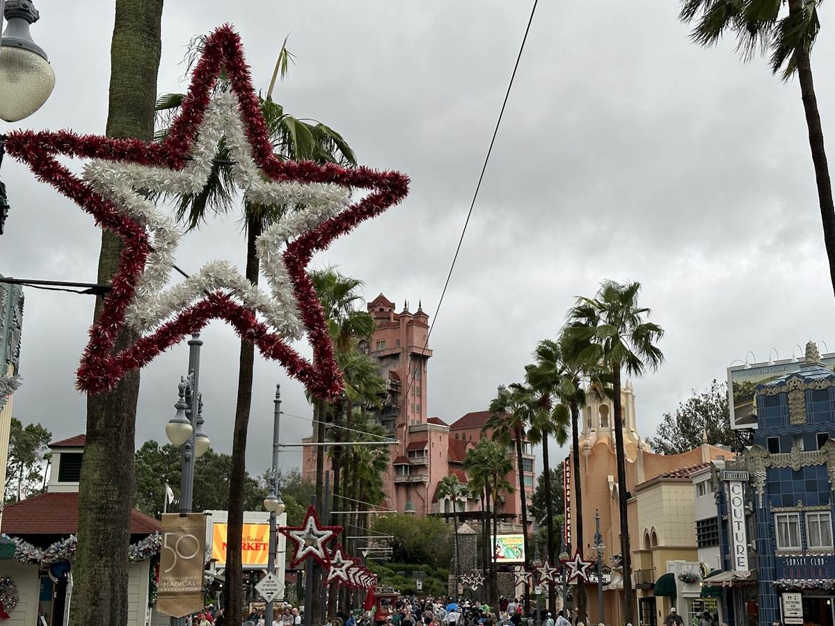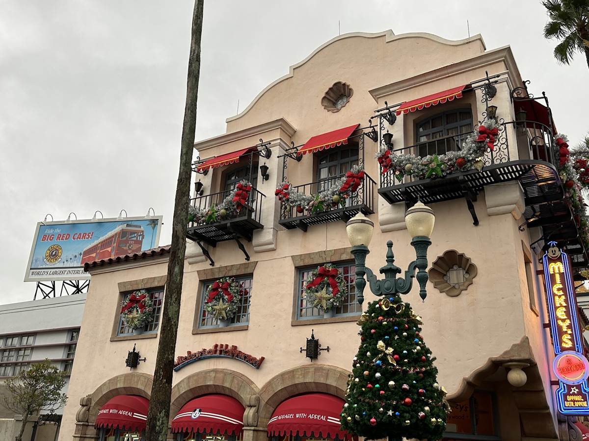Sunset Blvd. is also fully decked out now as we wait for the nightly holiday festivities to begin at the park. When that happens, this street takes center stage with their vignettes on screens placed around the area and projections upon the Twilight Zone Tower of Terror.