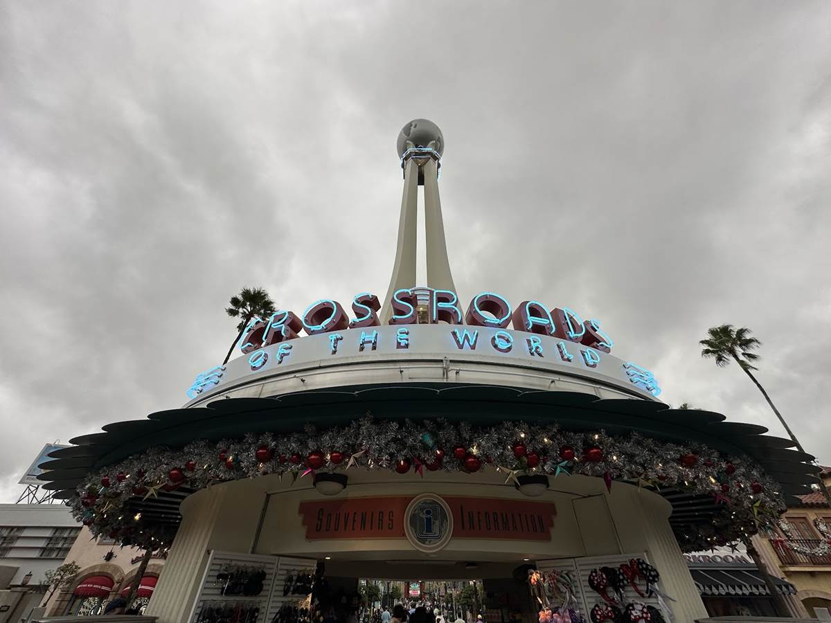 Not to be left out, Crossroads of the World near the entrance of the park is also full of festive fun.