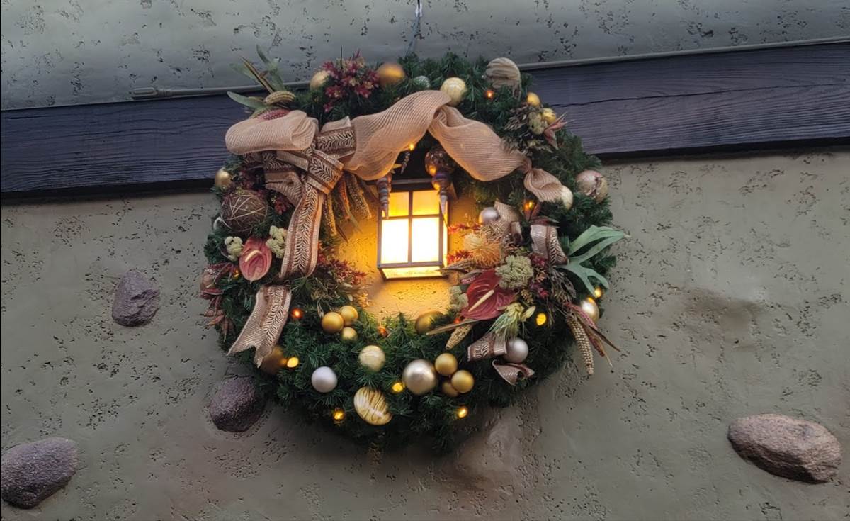 Winter decorations await guests as soon as they approach the entrance to Disney’s Animal Kingdom.