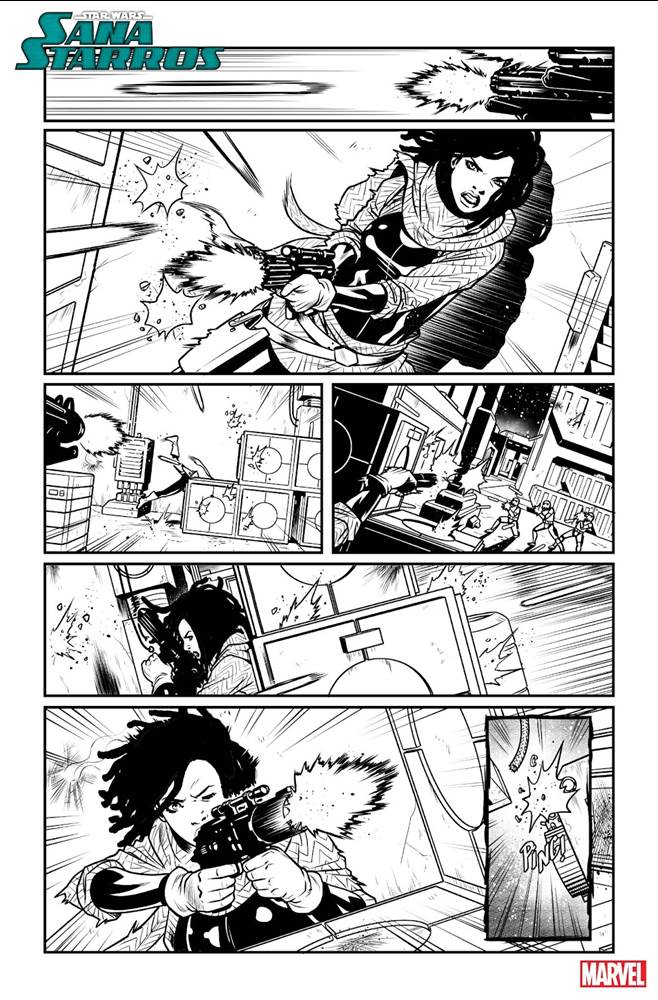 - Writer Justina Ireland: “Writing Sana Starros is an incredible honor, because I’ve really enjoyed what Alyssa Wong has done with the character in Doctor Aphra and so I’m excited to give Sana a little space to take center stage. Sana is a complicated character who tends to play her cards close to her vest, and getting into her head and getting to share a bit of who she is outside of her relationships with folks like Aphra or Han or Leia has been a blast."
