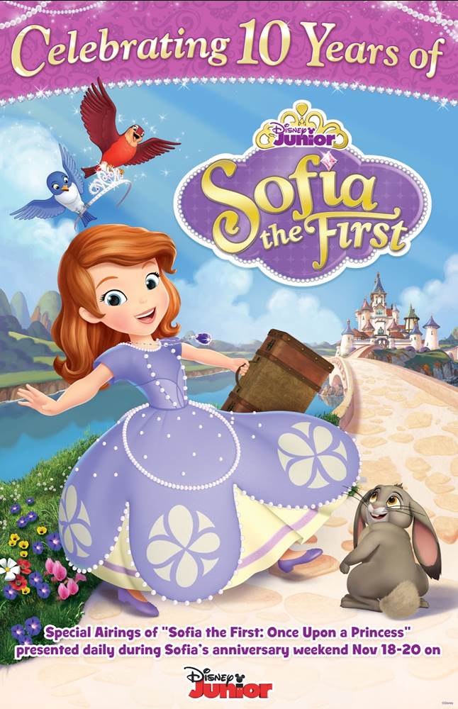 - To celebrate the 10th anniversary of Sofia the First: Once Upon a Princess, Disney Junior will be presenting special airings of the record-breaking TV movie all weekend long, from Friday, November 18th–Sunday, November 20th.