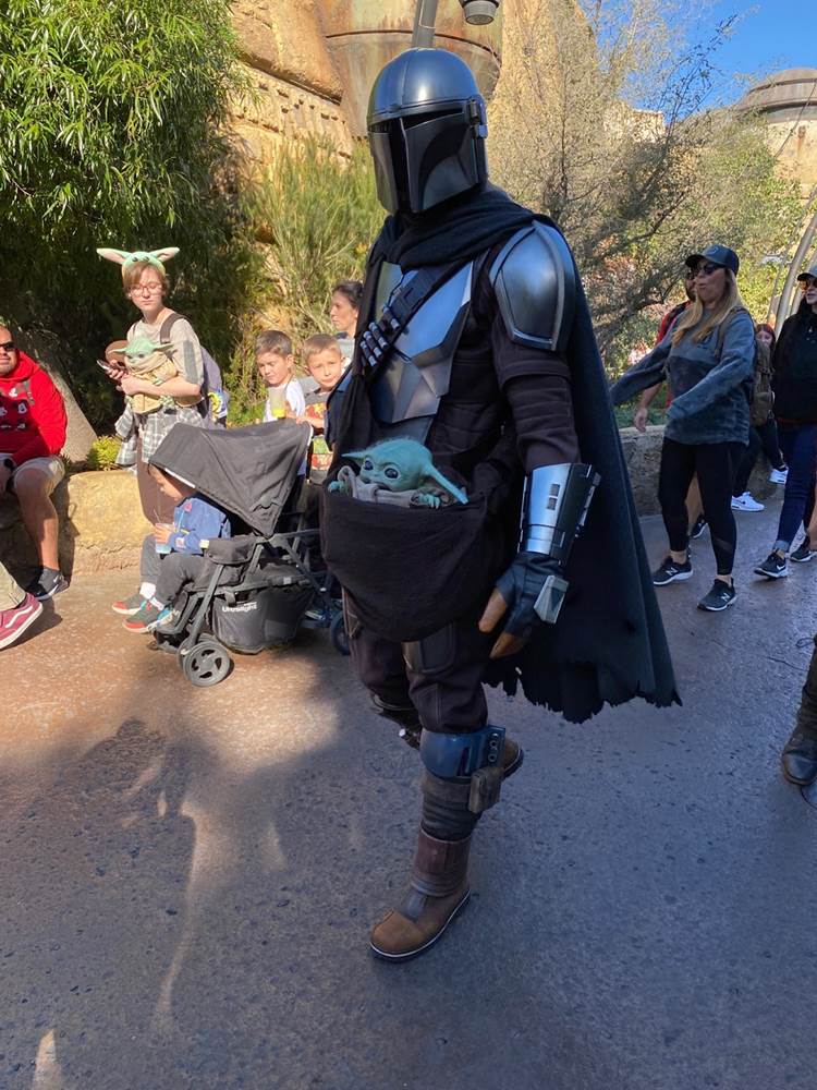 - Currently, the (former?) bounty hunter and his sidekick are only expected to be seen at Disneyland and not at the Disney’s Hollywood Studios version of the land — although that could change in the future.