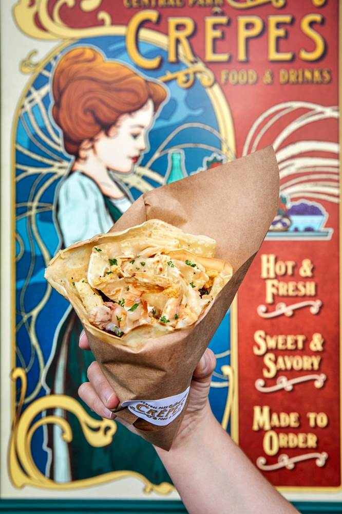 - Turkey Dinner Crepe: Filled with roasted turkey breast, cornbread stuffing, cranberries, turkey gravy, and cornbread croutons