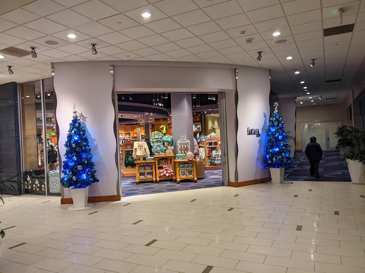Over at the Fantasia Shop, the entryway to the retail location is anchored by two trees that feature an almost Sorcerer’s Hat blue color scheme, likely paying homage to the film of the same name.
