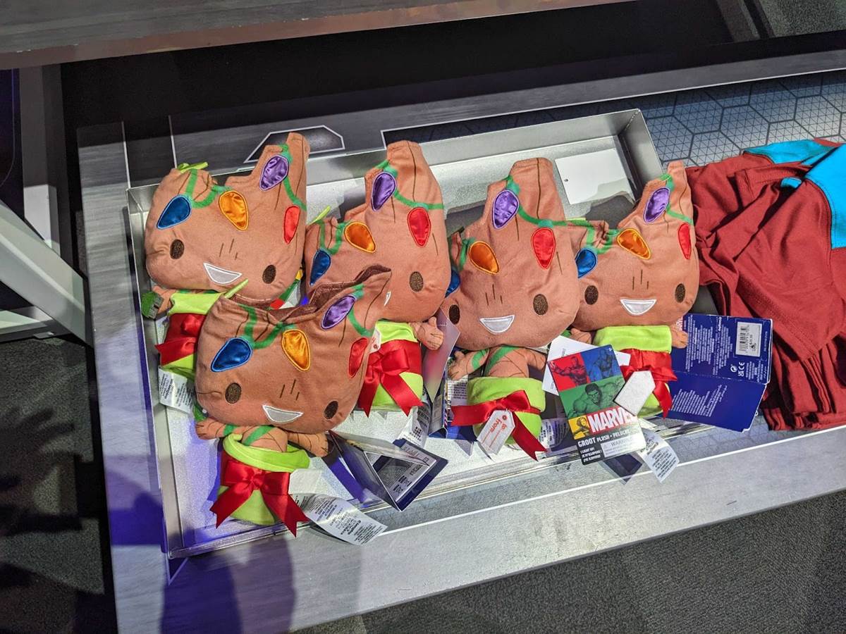 - And finally cuddle up with a Baby Groot plush showcasing the sentient sapling covered in a string of holiday lights.