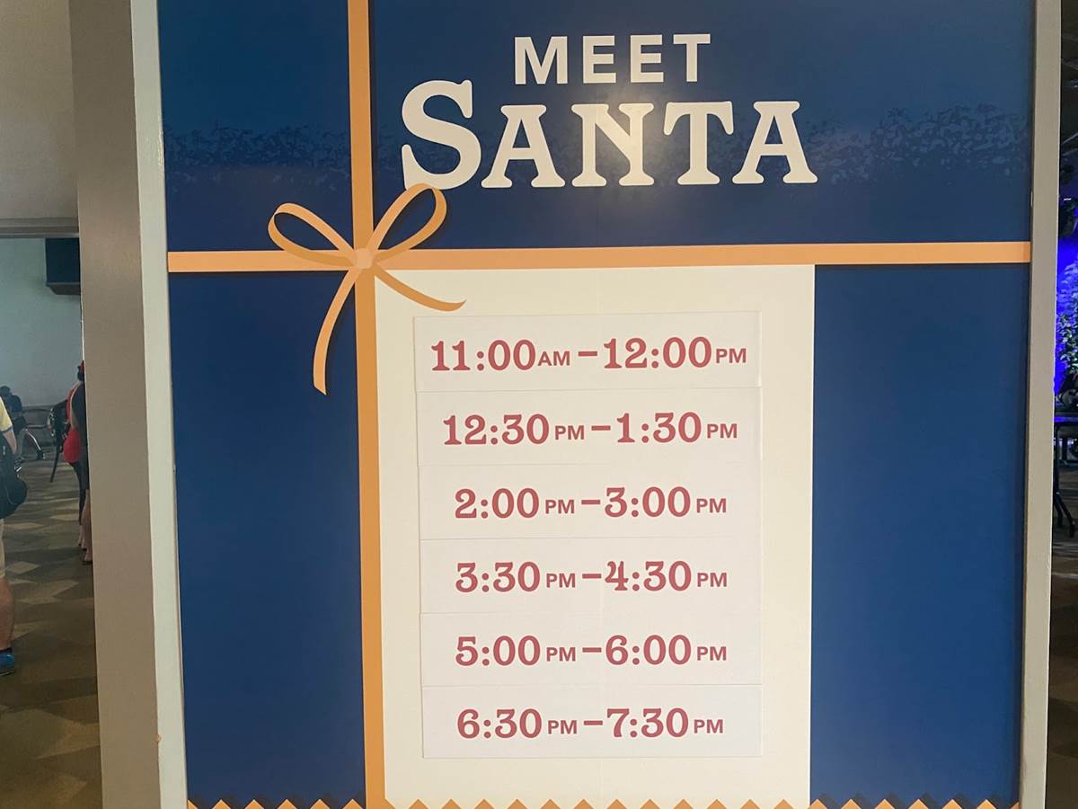 Santa gets a large sleigh and backdrop in the center of the Odyssey seating area.