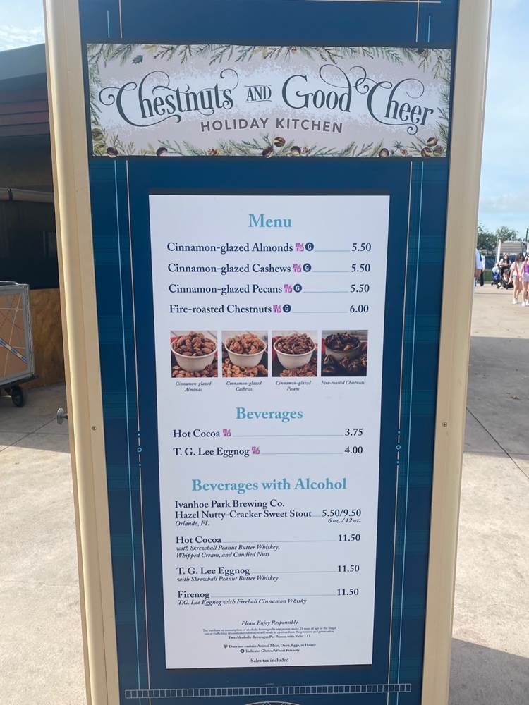 Much in the vein of all other Festivals at EPCOT, the Festival of the Holidays features a wide variety of food kiosks, serving up delicious festive faire. Below you can see most of the kiosks and their accompanying menus, but for a complete list, check out the Foodie Guide to the EPCOT International Festival of the Holidays.