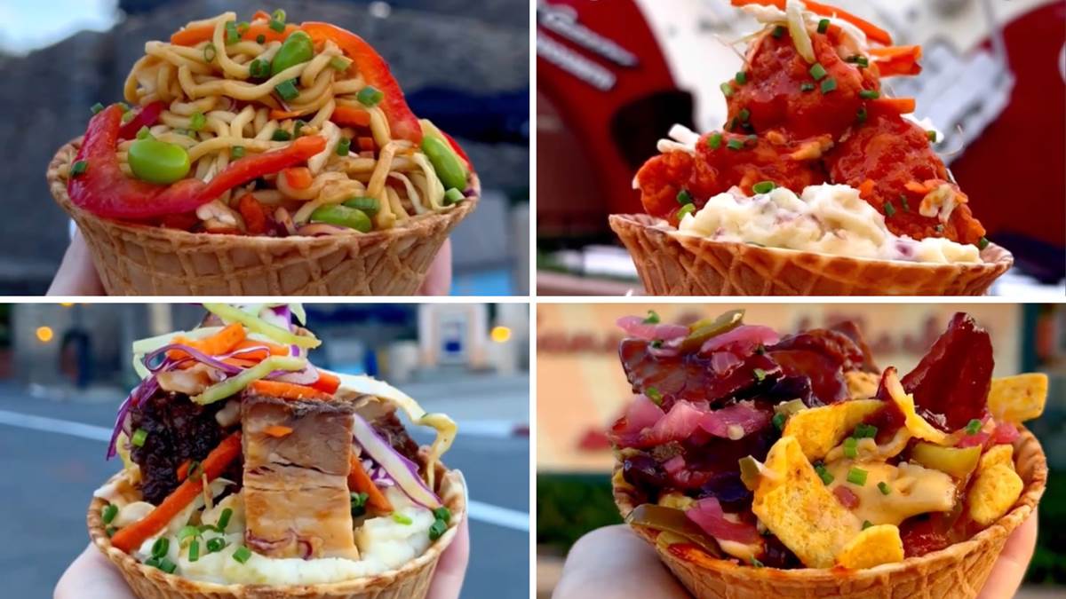 - The bowls themselves are the waffle, with various different toppings featured within.