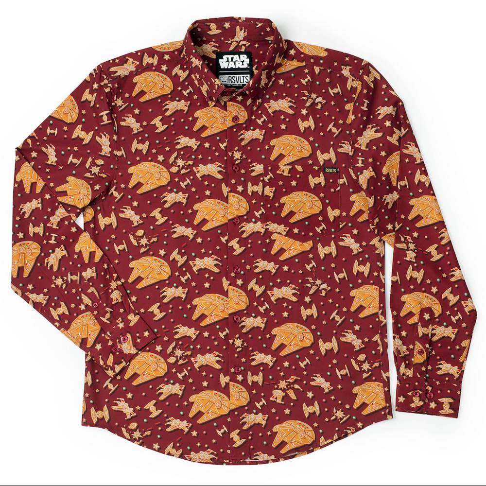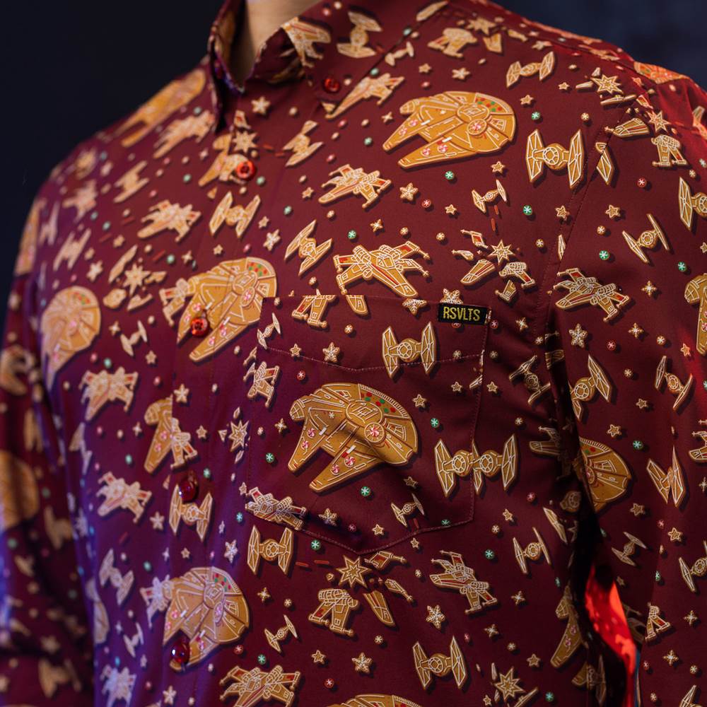 Picture this: you’re eating delicious gingerbread cookies while watching a Star Wars movie marathon when suddenly both elements become a part of your shirt! Oh wait, you don’t have to imagine it! You just need to pick up one of these cheery designs! The Millennium Falcon, X-Wings and yes, TIE Fighters have their chance to shine on this seasonal top that’s a little bit sweet and perfectly spicy!