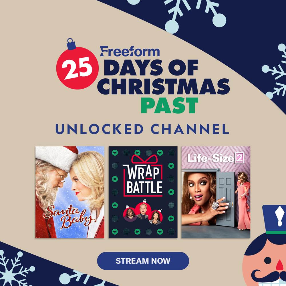 - Christmas fans can also tune into Freeform’s 25 Days of Christmas every day through December 25th.