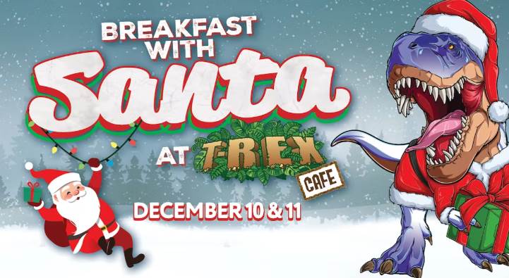 Do you want to have breakfast with Santa? If so, T-Rex Cafe has an event you will love.