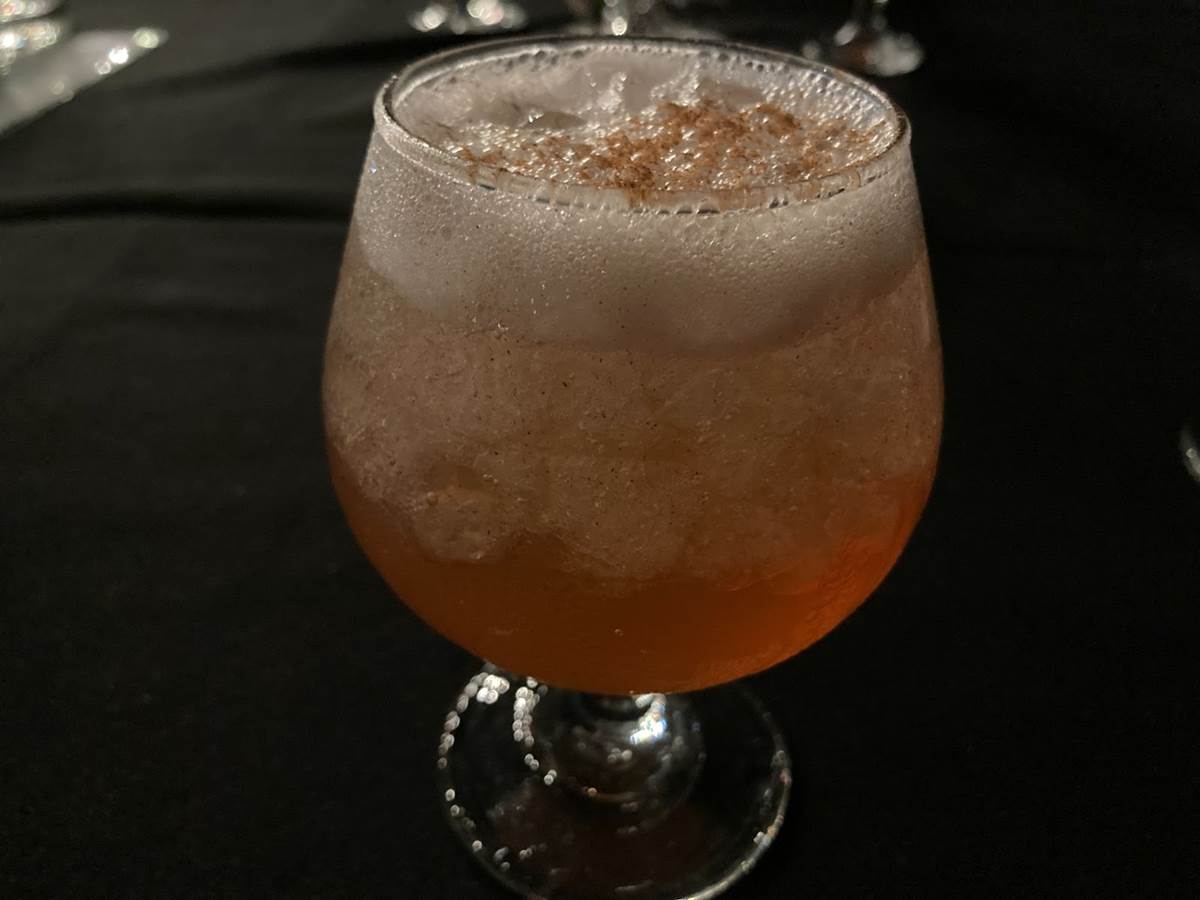 The third cocktail, which is not pictured, is the Cosmic Poinsettia. This high-roller cocktail includes Stoli Elit vodka infused with cranberries, cloves, cinnamon and orange peels for 72 hours. That is then mixed with Belle de Brillet Pear, St. George Spiced Pear, cinnamon and lime juice.