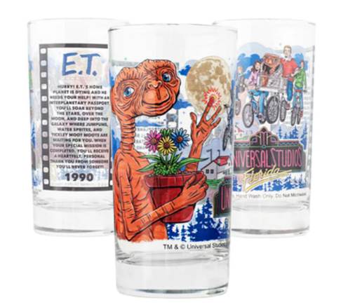 - Celebrate the classics with these Universal Studios collectible glasses. Designs feature vintage-inspired illustrations of original Universal Studios Florida attractions, such as JAWS, E.T. Adventure, Back to The Future: The Ride and Kongfrontation. Collect all 4 to make a set!
