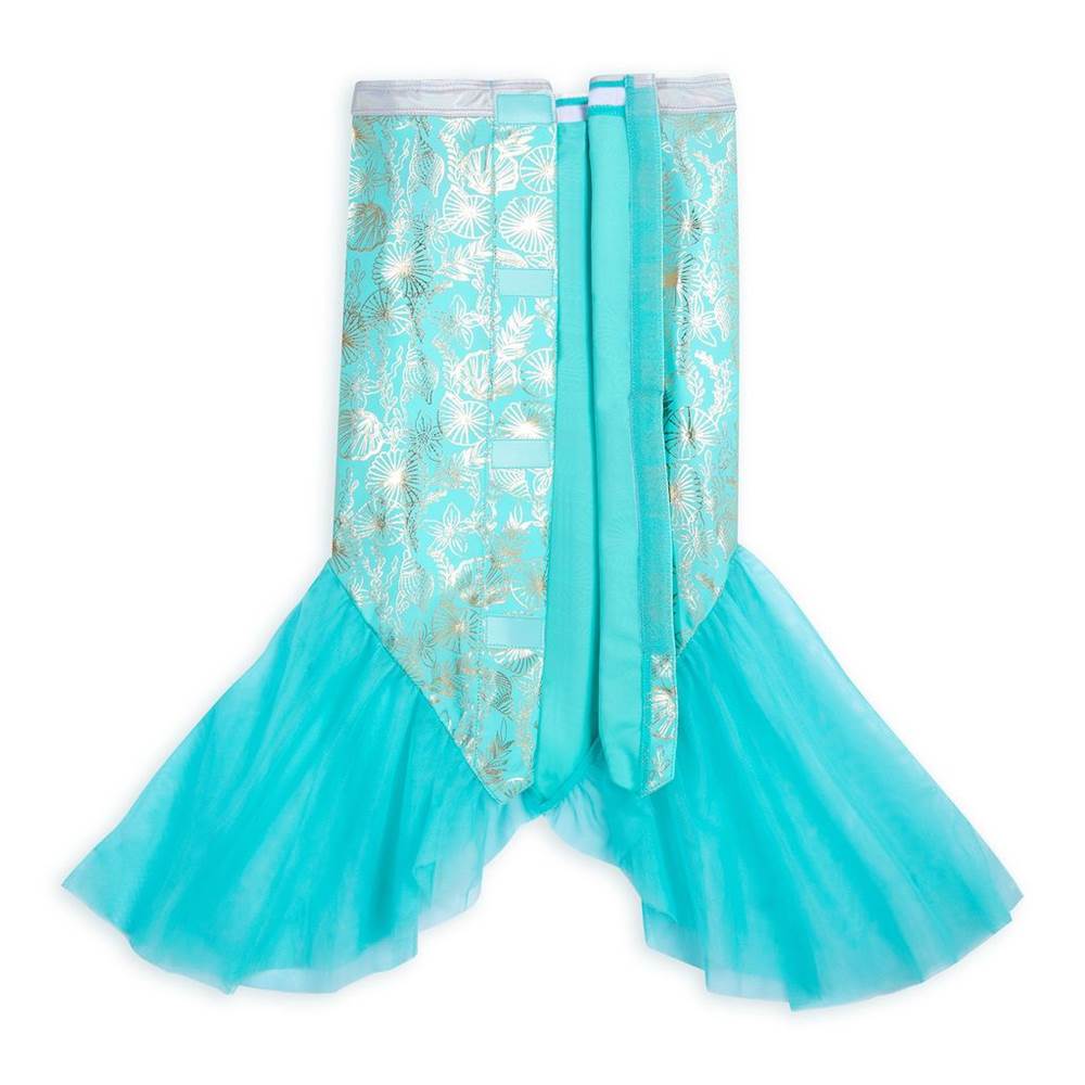 The water is so much more fun when you're a mermaid. This three-piece Ariel adaptive swim set features a two-piece swimsuit and long mermaid skirt, all with self-stick fabric closures for ease of use.