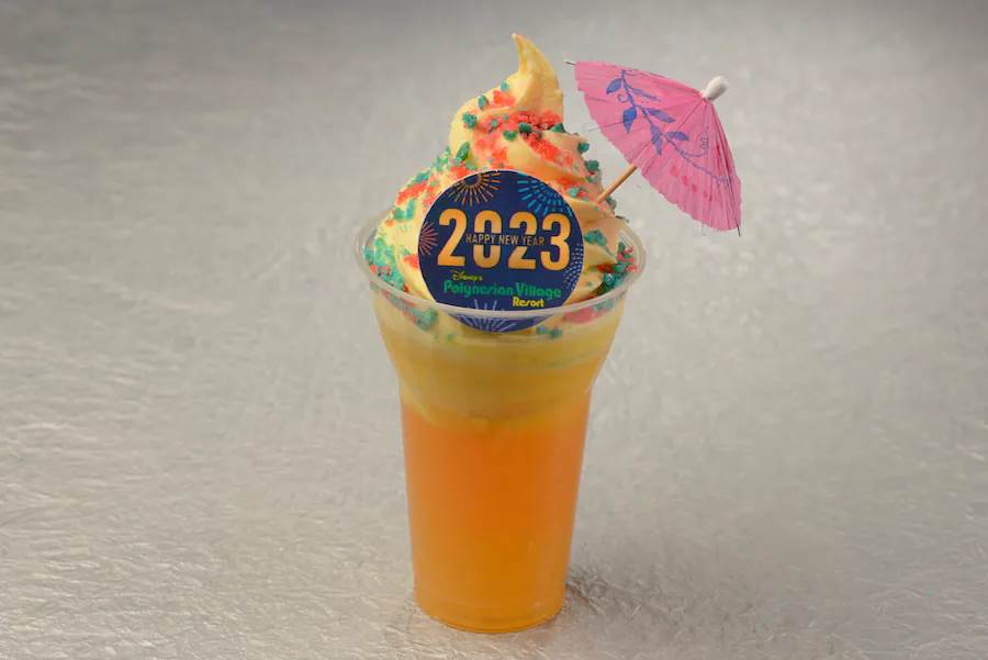 - New Year’s Float: DOLE Whip Float with passionfruit, orange, and guava juice topped with a 2023 white chocolate medallion, popping candy, boba balls, and a cocktail umbrella (New)