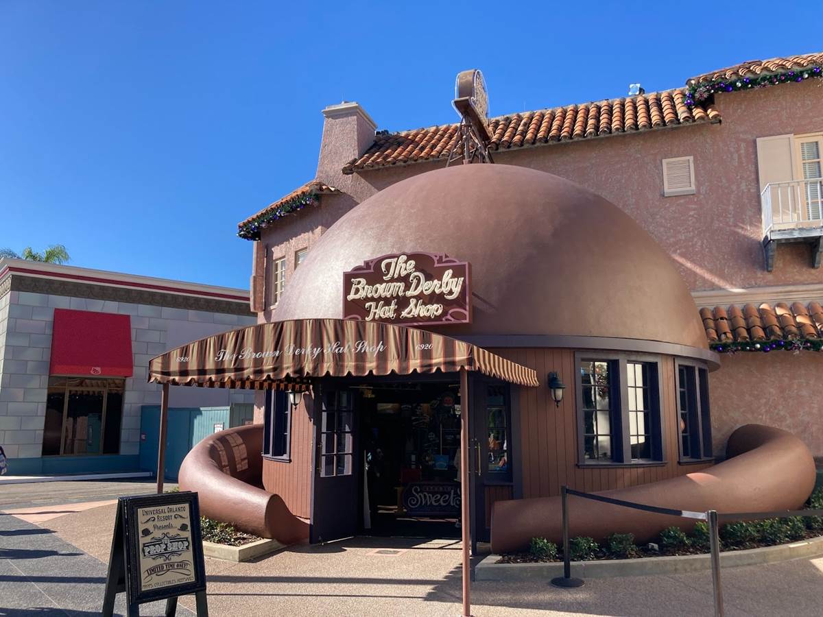 The Brown Derby Hat Shop recently reopened at Universal Studios Florida but it no longer serves the purpose its name suggests. The location is now the new site of Universal Orlando Resort’s Prop Shop.