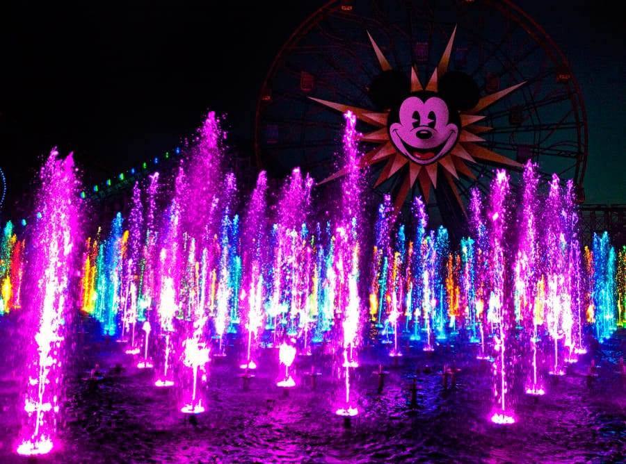 - World of Color – One celebrates the rich storytelling legacy begun by Walt Disney a century ago, bringing to spectacular life moments from favorite films including The Lion King, Soul, Moana and many more.