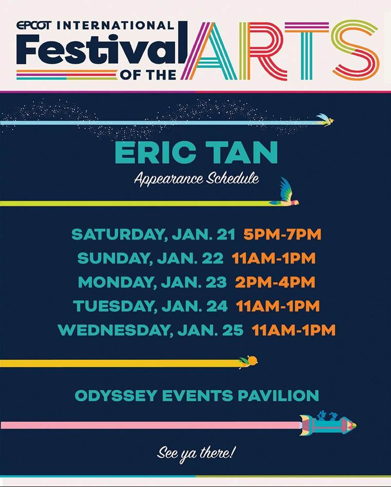 - Tan will be appearing at EPCOT’s Odyssey Pavilion, which will be the home to the WonderGround Gallery this year, on multiple dates during the Festival. Those dates and times are:
