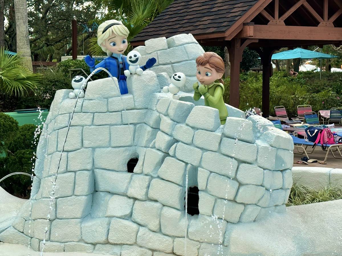 Tike’s Peak, an area dedicated to little visitors at Walt Disney World’s third water park. Now, characters have been added to the area from the Frozen franchise, including the short Frozen Fever. With the inclusion of the characters, youngsters can now experience the miniature slides and attractions, splashing around in front of Anna and Elsa’s igloo castle or playing with Olaf and his Snowgie pals in the warm wading pool.