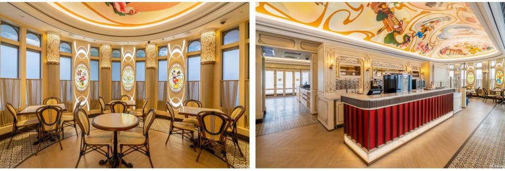 - Donald, Mickey, Minnie, Goofy, Pluto, Daisy, Chip & Dale and Donald’s nephews Huey, Dewey and Louie are depicted throughout the bistro, from the ceiling murals to the oval framed stained glass artworks on the walls, offering guests the ideal photo opportunity.