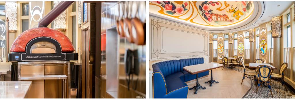 - With an open kitchen including an impressive brick pizza oven and full bar, guests can witness how chefs create Disney magic in every sizzling hot pizza and freshly made drink.