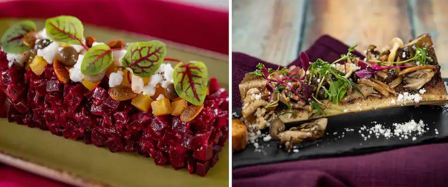 - Blood Orange-braised Beet Tartare with mustard vinaigrette, pickled clamshell mushrooms, and golden beets (Wonderful Walk of Colorful Cuisine Item) (Plant-based Item) (Gluten/Wheat Friendly)