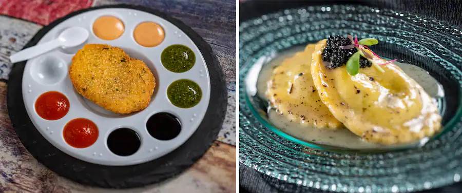 - Ravioli ai Funghi, Perle Tartufate: Wild mushroom-stuffed pasta with truffle butter and truffle pearls (New)