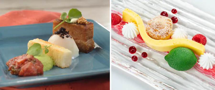 - The Tropics: Lilikoi mousse, guava cake, coconut crémeux, compressed pineapple, and mango gel (New)