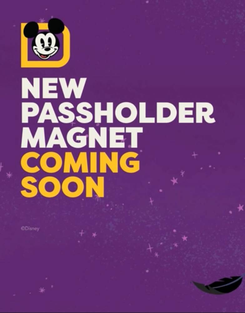 - Against a message saying “New Passholder Magnet Coming Soon," a feather floats by, confirming this magnet will feature Dumbo.