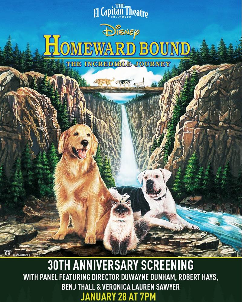 The El Capitan Theatre in Hollywood will celebrate the 30th anniversary of Homeward Bound: The Incredible Journey with a screening and live panel on January 28th.