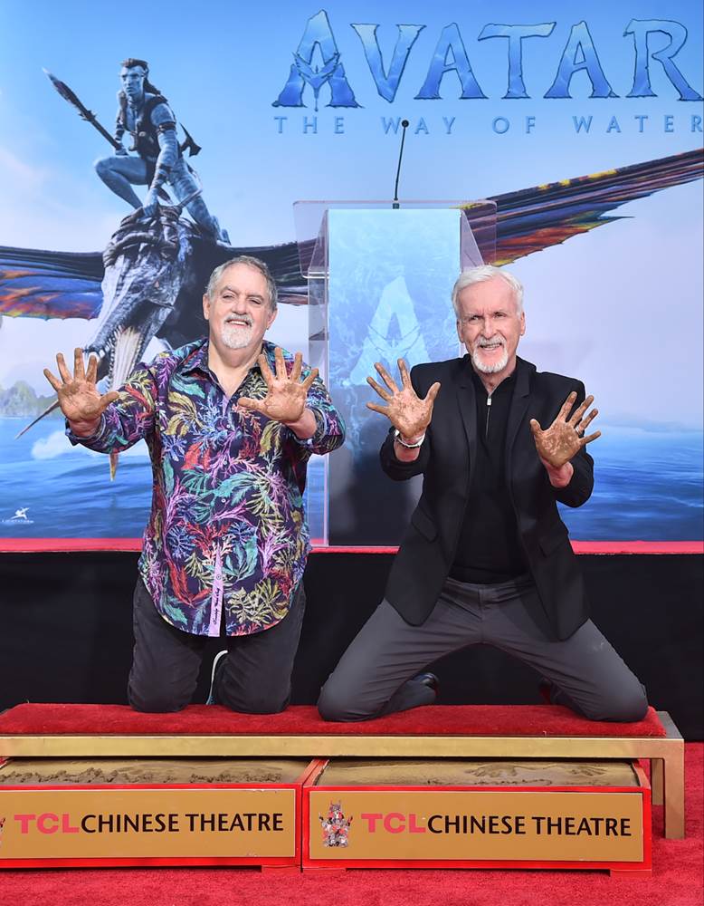 Avatar: The Way of Water filmmakers James Cameron and Jon Landau were honored earlier today with a Handprints and Footprints Ceremony at the TCL Chinese Theatre IMAX in Hollywood.